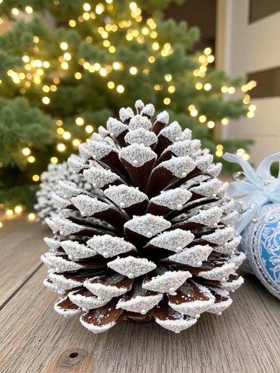 Several creative folks will find the Frosty Pinecone Craft an ideal way to add a rustic charm to their Christmas decor. This simple project transforms ordinary pinecones into frosty delights through pinecone painting, enhancing any rustic decor theme.