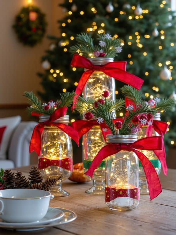 Holiday decorators seeking a cozy glow can immerse themselves in creating Festive Mason Jar Lanterns for their Christmas setup. These mason jar crafts bring warmth with festive lighting, transforming simple jars into stunning decor.