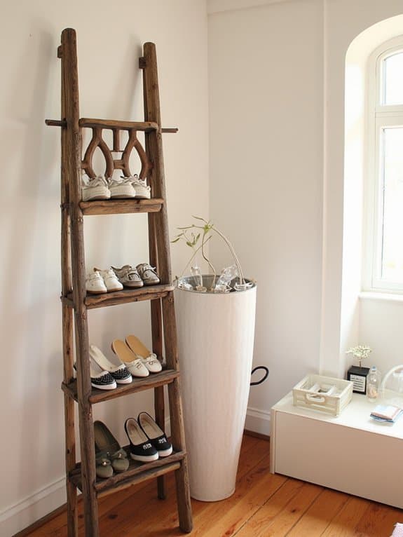 Crafting a DIY Shoe Ladder can transform your bedroom storage with a stylish, practical touch. This creative shoe storage solution maximizes vertical space, keeping your footwear organized and accessible. Enjoy shoe ladder benefits like a clutter-free floor and a rustic decor vibe in just a weekend.