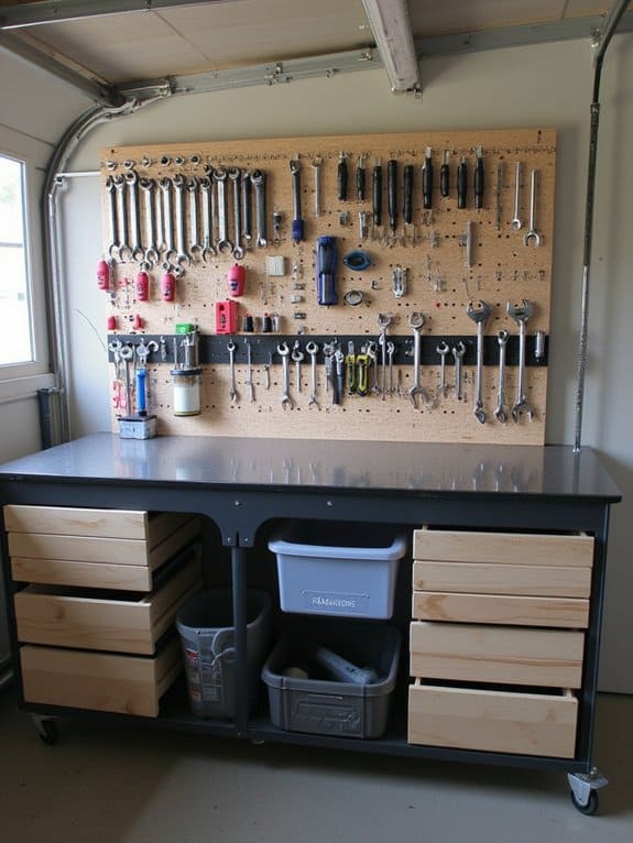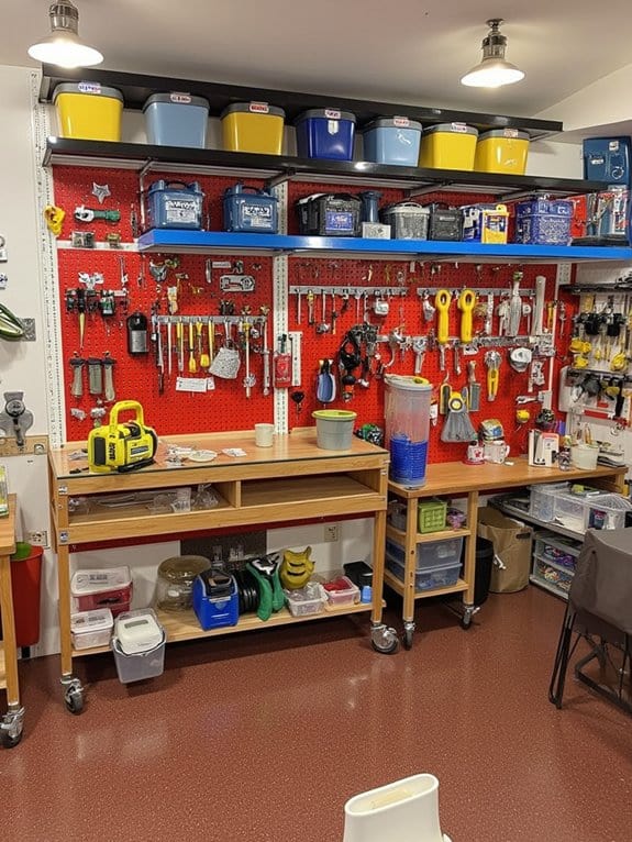 Countless homeowners find pegboard storage solutions to be a game-changer for garage organization. You can transform your cluttered space with versatile pegboard ideas, maximizing vertical storage in just a weekend. Install a 4×8-foot panel on your wall, and you’re ready to customize with various pegboard accessories.