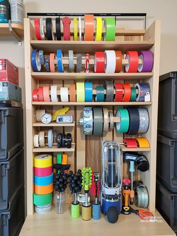 Crafting a DIY tape organizer can transform how you store duct tape and colored tapes in your garage. Boost tape accessibility and tape organization with this simple project, taking just 30 minutes to complete.