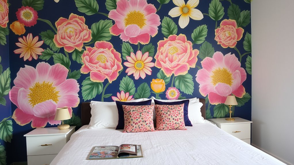Transform your bedroom with the vibrant charm of eye-catching floral murals that instantly refresh your space. You’ll love how a single wall, painted or papered with bold blooms, adds drama in just a weekend.