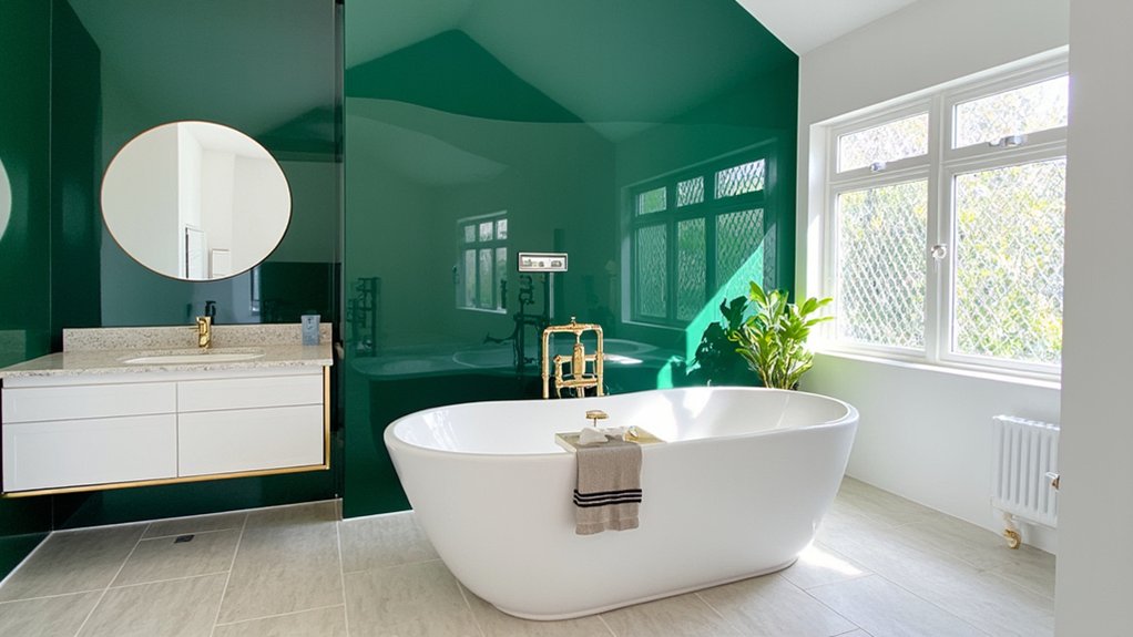 Transform your bathroom with a stunning gold accent wall that adds a touch of luxury to your space. You’re creating a glamorous vibe with just one wall, so let’s get started on this elegant upgrade.