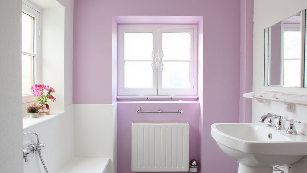 Let’s plunge into a stylish choice with a chic lavender accent wall for your bathroom. Imagine transforming a dull space with this soft, calming color. You can paint a 10×8-foot wall in just 4 hours over a weekend.