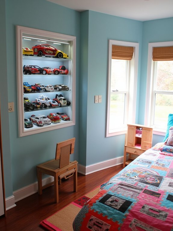 The display transforms any bedroom into a professional-looking showroom, with ample space to expand as collections grow. These cases protect the cars while keeping them easily visible and accessible, creating an attractive focal point for any Hot Wheels enthusiast’s space.