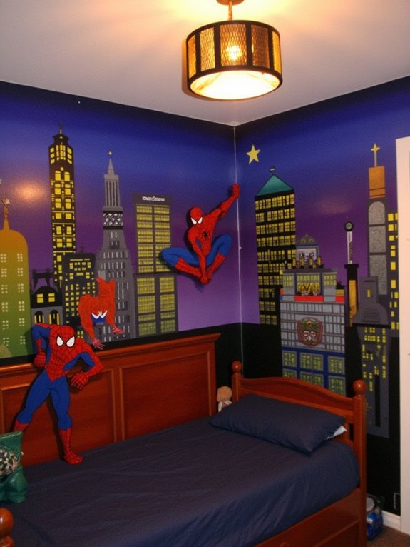 Painted superhero wall murals create dramatic focal points in children’s bedrooms, combining bold colors and dynamic character designs that complement existing room décor. These large-scale artworks require careful planning and professional techniques to achieve the best visual impact while maintaining balance in the space.