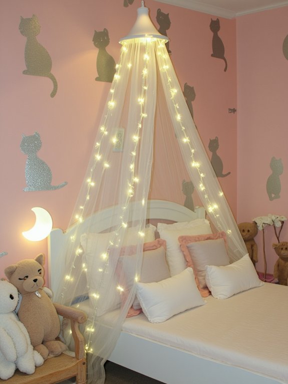 A Fluffy Kitty Dream Den transforms a toddler’s bedroom into a cozy Hello Kitty sanctuary through strategic decor placement. The design focuses on incorporating soft pink tones and cute kitty-themed elements throughout the space to create an adorable environment.