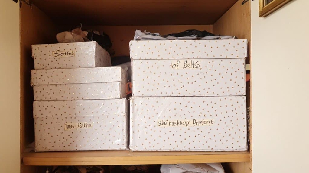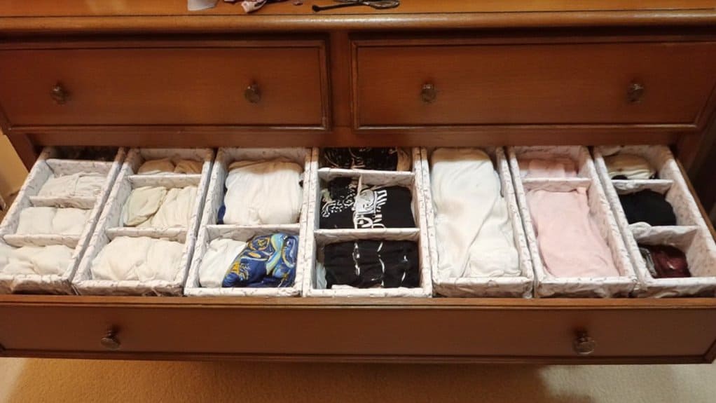 Let’s just say your closet’s a bit of a “cozy chaos,” shall we? I’ve been there, trust me—my own closet once looked like a thrift store explosion! You can tame it on a budget, though. Start with cardboard boxes as dividers; cut them to fit your drawers, about 4 inches high. It’s cheap and clever! There’s more to this trick, so stick around for the full scoop.
