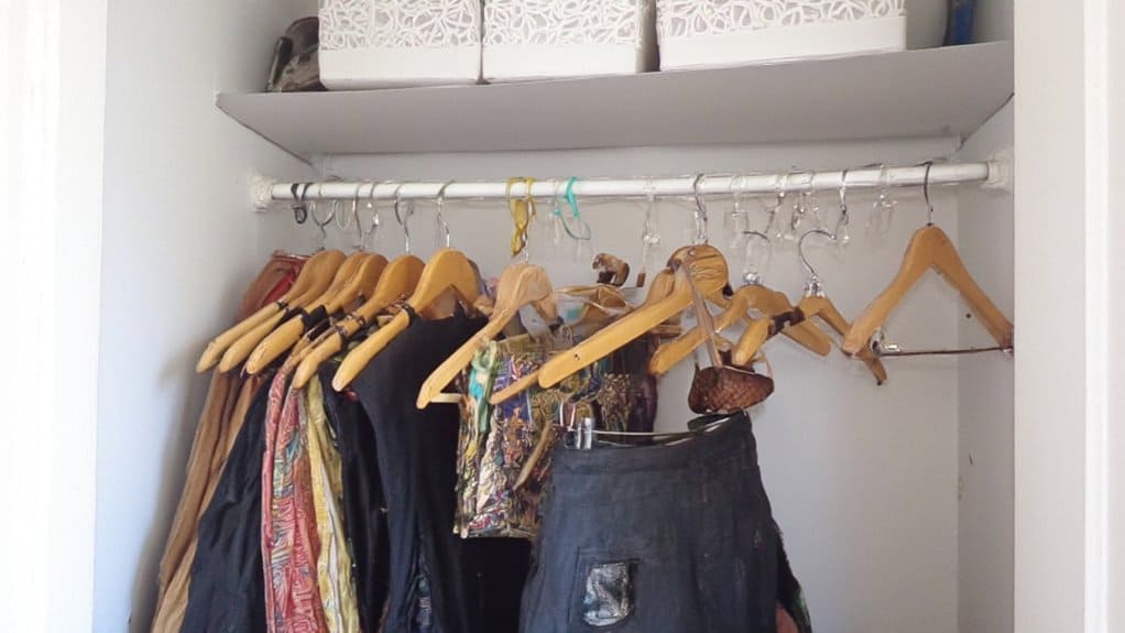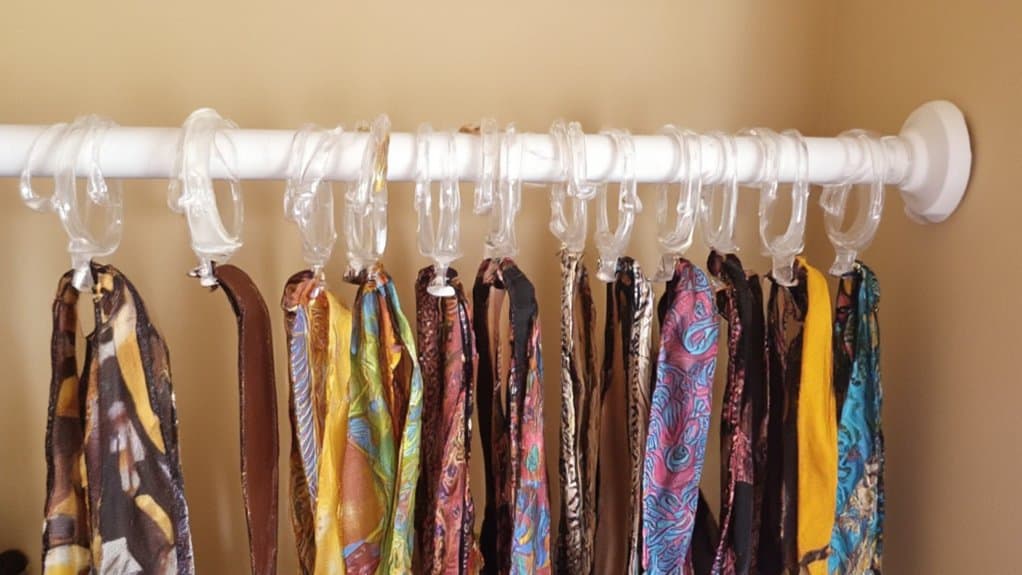To implement this hack, purchase a pack of shower curtain rings from a dollar store or discount retailer, ensuring they are sturdy enough to hold your items. Slide the rings onto your closet rod, spacing them evenly for easy access, and hang your accessories by draping or clipping them through the rings. This method keeps items tangle-free, visibles, and within reach while making efficient use of vertical space in your closet.