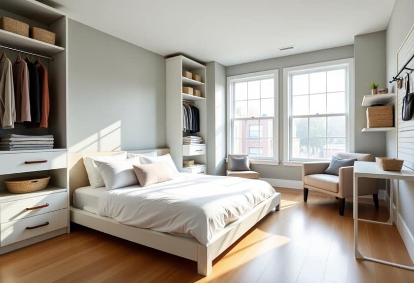 Arrange seasonal items in less accessible areas, using clear storage bins for off-season clothing. Install hooks or specialized organizers for accessories, and use drawer organizers for smaller items like undergarments and socks.