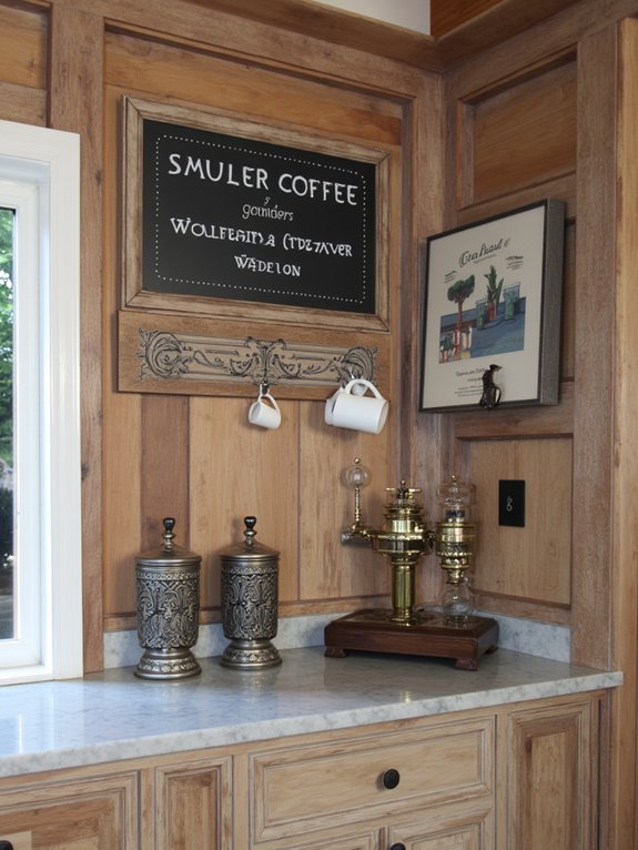 Transform your home beverage station into a professional café experience with a custom chalkboard menu. Using basic chalk markers and online inspiration, you can create an artistic display that showcases your favorite drinks and brings coffee shop ambiance to your space.