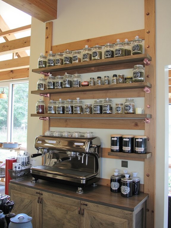 From rustic floating shelves displaying your favorite beans to sleek under-cabinet solutions that maximize storage, the possibilities are endless.