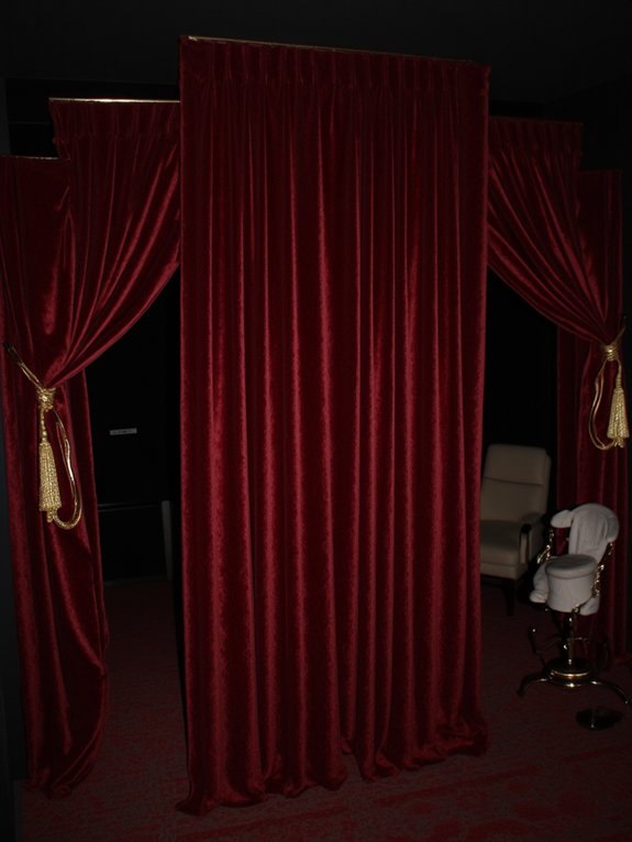 The rich texture and deep burgundy color of theater curtains can dramatically transform a home cinema space, creating an authentic movie theater experience. The floor-to-ceiling panels with blackout lining block light while adding sophisticated drama to the room.