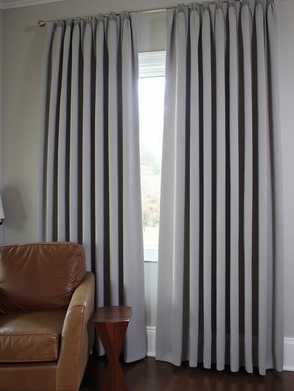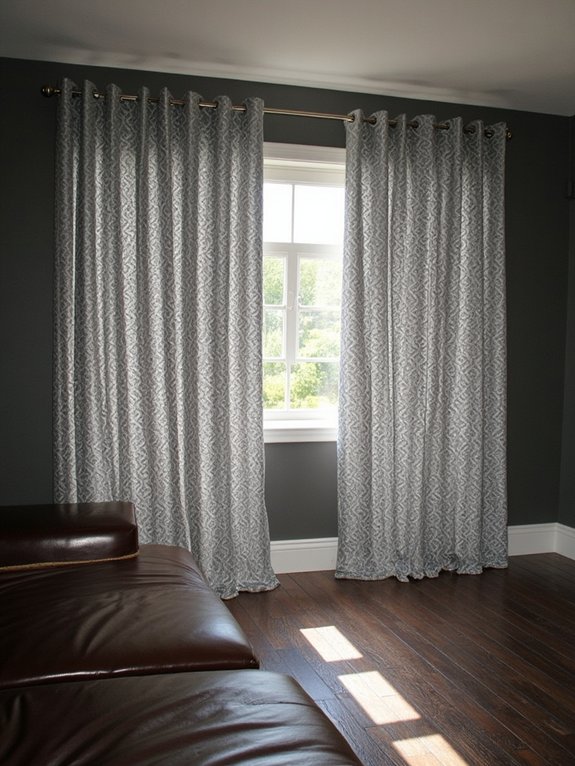 Textured steel gray drapes combine sophisticated style with practical soundproofing, featuring subtle patterns and dimensional weaves that enhance any man cave’s visual appeal. The premium polyester-blend material incorporates raised geometric patterns, creating depth while requiring minimal maintenance.