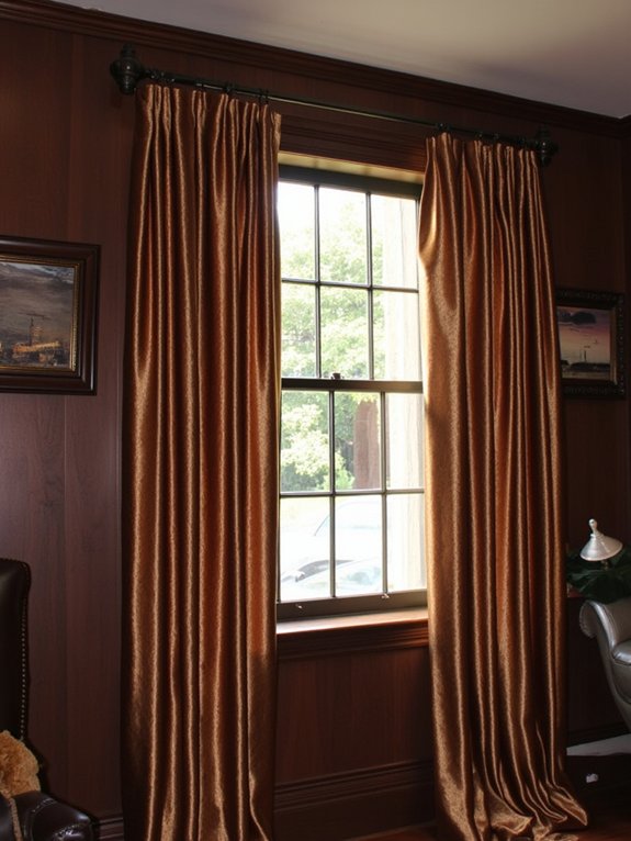 Bronze metallic blackout curtains combine style with functionality, featuring a sophisticated metallic sheen and superior light-blocking capabilities. The curtains offer 99% light blocking performance while adding a contemporary design element through their subtle bronze finish.
