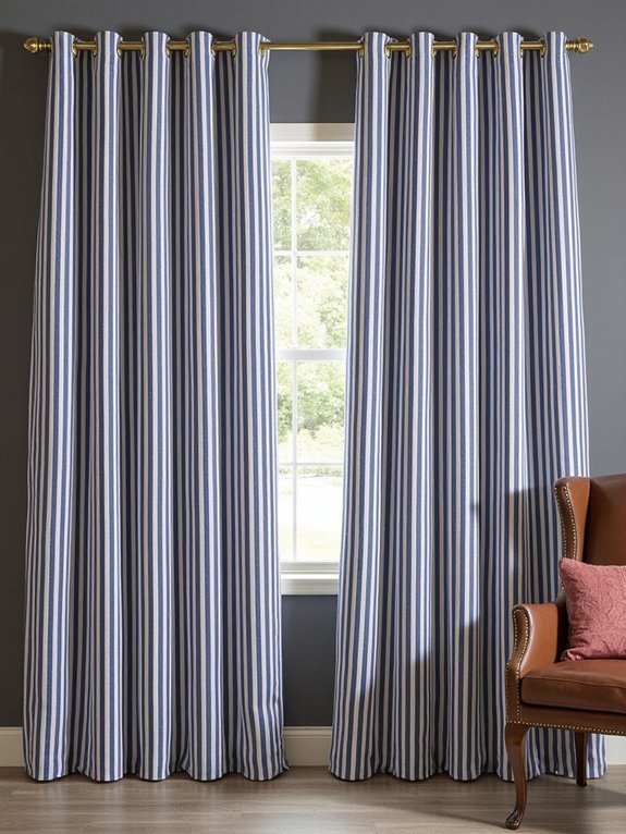 Navy stripe panel curtains bring timeless nautical style to any man cave, working equally well in traditional or modern settings. The versatile striped patterns can be arranged vertically to create the illusion of height, horizontally to add visual width, or in mixed widths for added dimension.