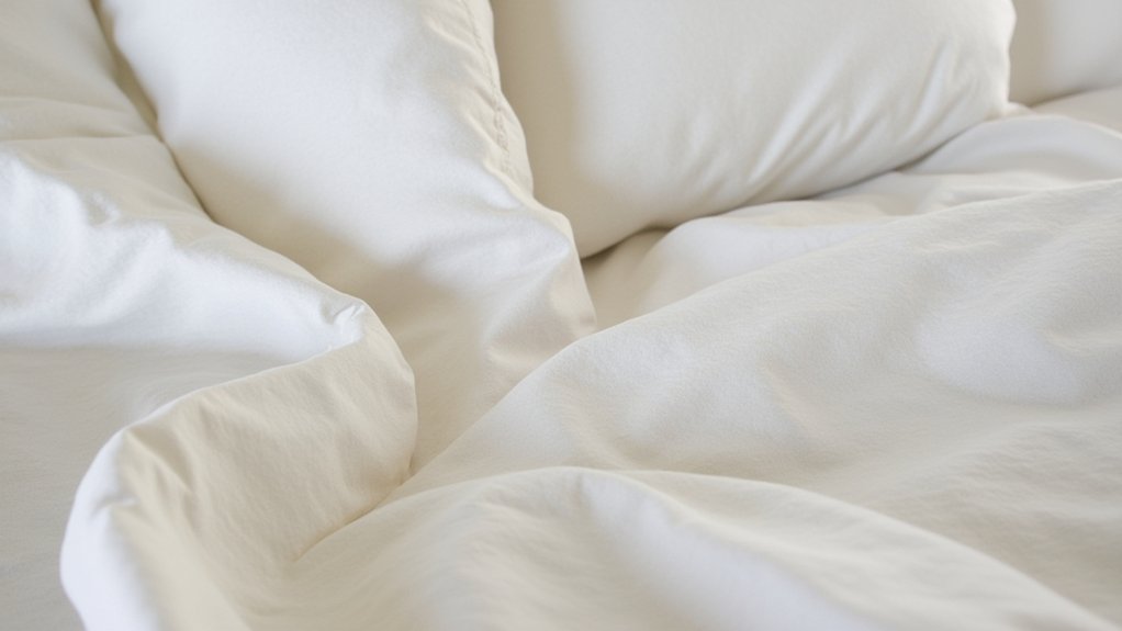 Like a gentle caress gone wrong, you might experience allergic reactions to sateen sheets if you’ve got a sensitive scalp, especially if there’s residual dye or chemical treatments in the fabric.