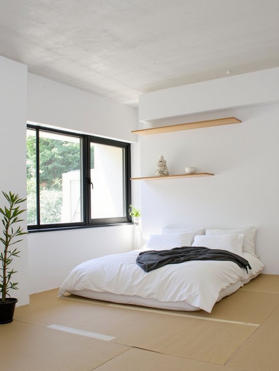 The minimalist Japanese floor mattress combines space efficiency with comfort, making it ideal for basement bedrooms. Using high-density foam and traditional shikibuton design principles, these mattresses provide a comfortable sleeping surface while embracing Japanese minimalist aesthetics.