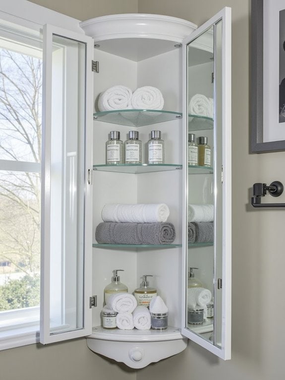 The cabinet’s moisture-resistant construction prevents warping in humid bathroom environments, while its versatile design accommodates various towel sizes and additional toiletries. The space-efficient corner mounting provides up to 20% more storage capacity than traditional wall-mounted units, making it an ideal choice for bathroom organization.