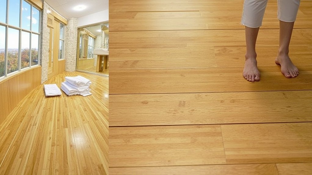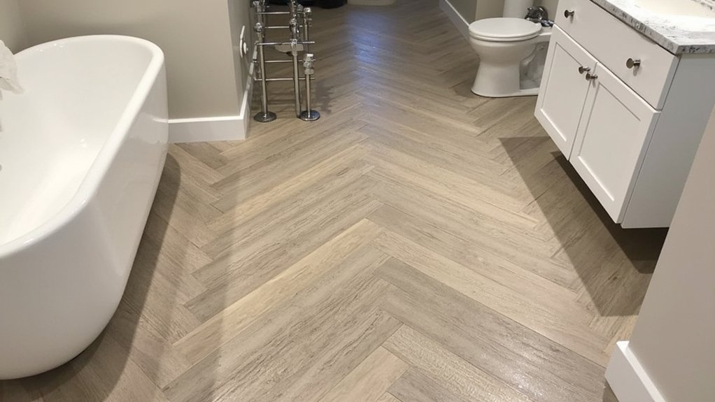 Switching from vinyl planks, you might find waterproof bamboo flooring an exciting option for your bathroom upgrade. It’s durable, stylish, and handles moisture well, lasting up to 20 years with proper care. You’ll love its natural look, but installation needs precision for a 12×12-inch tile layout.