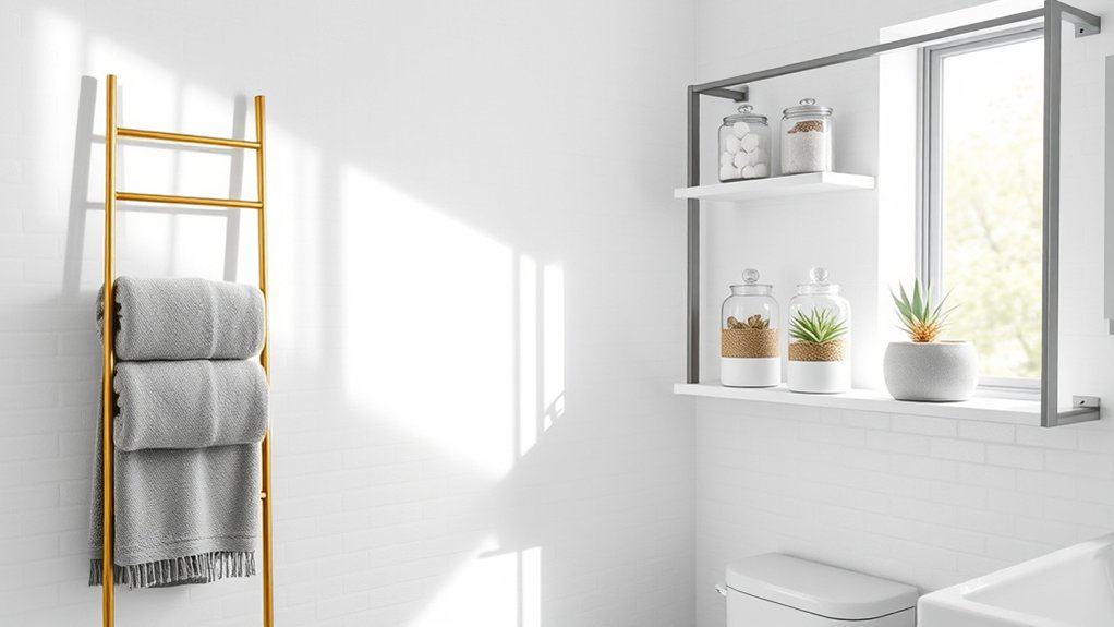 Implementing space-saving towel racks and hooks transforms your bathroom into an efficient, hotel-like space where every towel has its designated spot. This organization method prevents towels from ending up on the floor, reduces laundry frequency, and creates a more hygienic environment by allowing proper air circulation between uses.