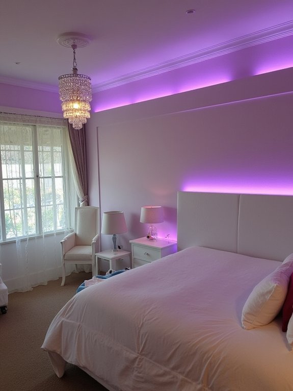 Lavender LED mood lighting offers a simple yet effective way to transform bedrooms into calming spaces that promote better sleep and relaxation. Strategic placement of these gentle purple lights can create an atmosphere that aligns with color psychology principles, where lavender is associated with tranquility and rest.