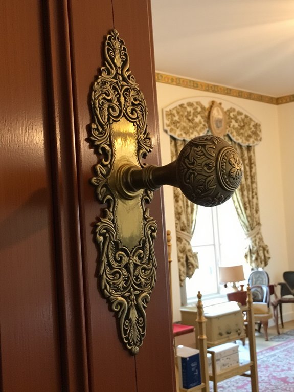 Antique brass door knobs are essential decorative elements that enhance Victorian bedroom aesthetics while providing practical functionality. These classic fixtures feature detailed designs like oval rosettes with floral patterns and traditional mortise locks, typically measuring 2.25 inches in diameter.