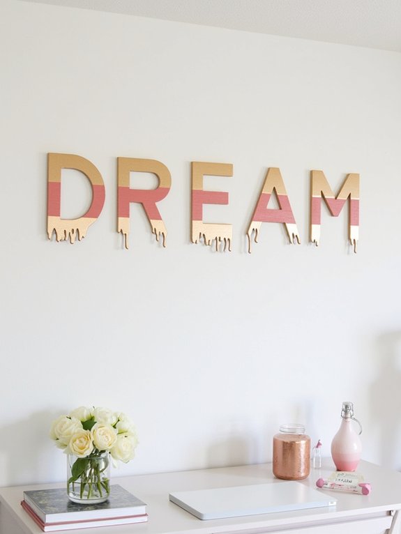 Paint-dipped wooden letters offer a creative way to personalize bedroom walls with names or meaningful words. This DIY project uses wooden letters from craft stores and two complementary paint colors to create striking wall art that adds dimension and visual interest to any space.