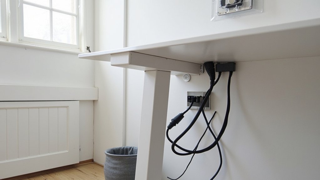 - Use Cable Clips: Attach adhesive clips (1-inch wide) along your desk edge every 12 inches to hold cords.