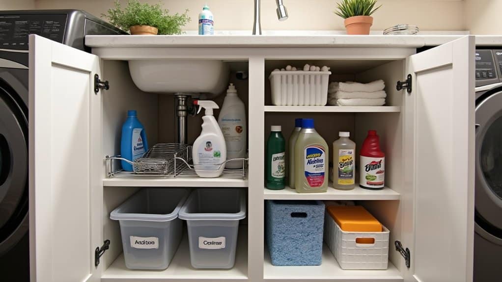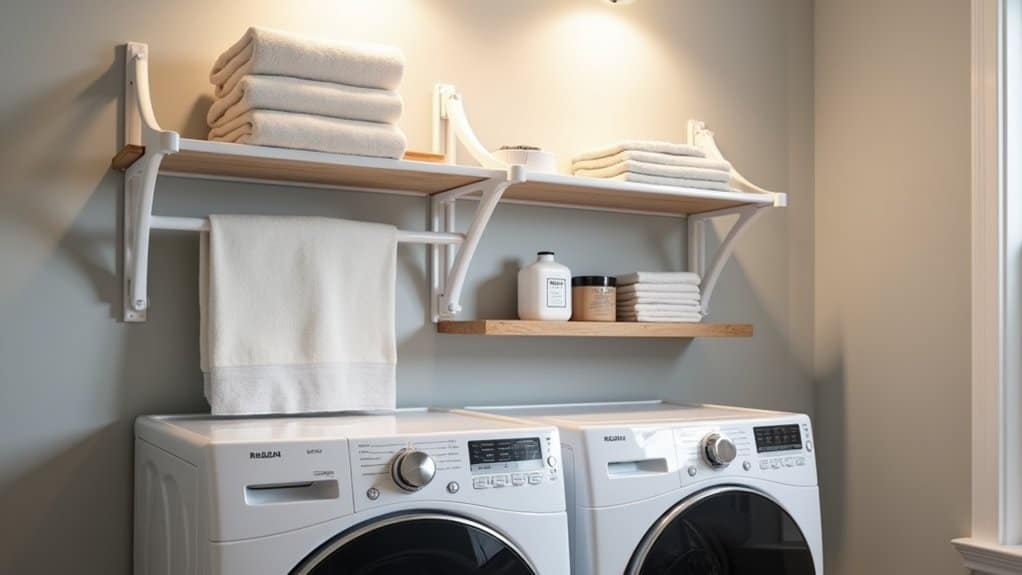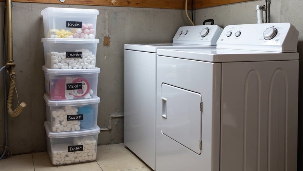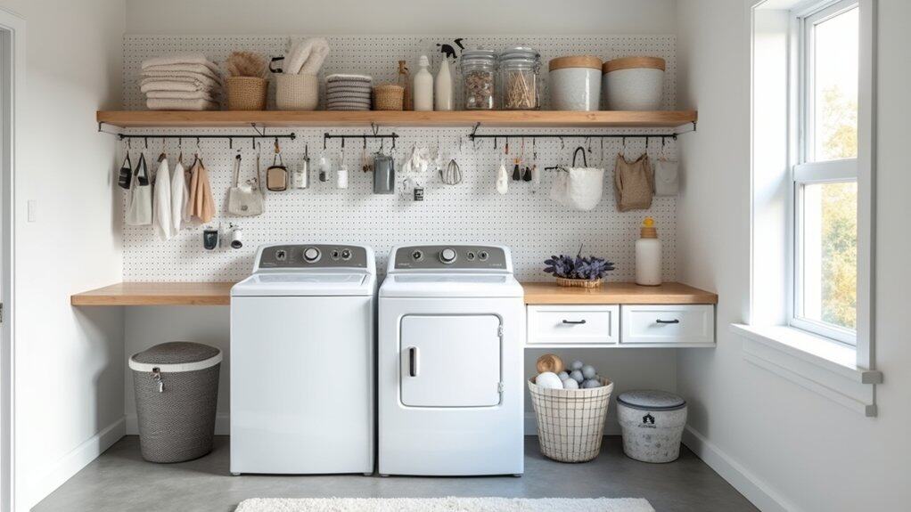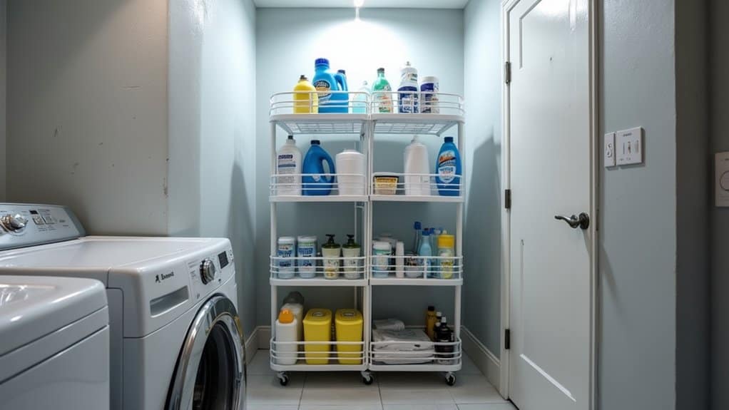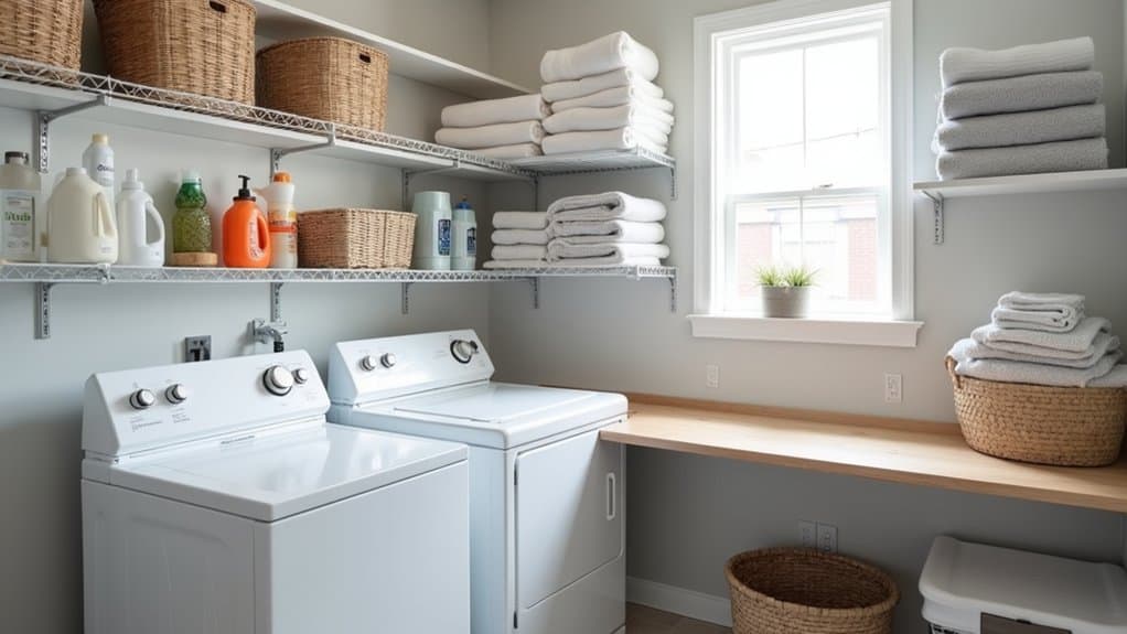 Picture your basement laundry room as a cluttered cave, barely navigable with piles of detergent and mismatched socks. Hey, I’m right there with you—I’ve battled the laundry chaos myself! Let’s transform that space with clever storage ideas. Start with wall-mounted shelves; they’re a game-changer for stashing supplies. Trust me, there’s more where that came from. Stick with me to uncover easy tricks that’ll make your laundry days a breeze!