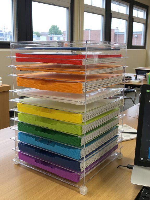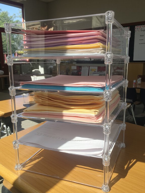 These organizers can be strategically arranged to maximize desk space through vertical stacking, while angled positioning allows quick access to frequently used items. With proper labeling by subject or class period and dedicated slots for urgent materials, these tools create an efficient workflow that supports daily classroom activities and administrative tasks.