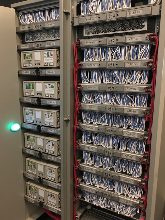 The cart’s essential features include built-in charging stations, numbered compartments that correspond to student rosters, lockable wheels for mobility, a mounted sign-out sheet, and protective padding. This system enables efficient device tracking and distribution during technology-based lessons while maintaining device safety and student accountability.