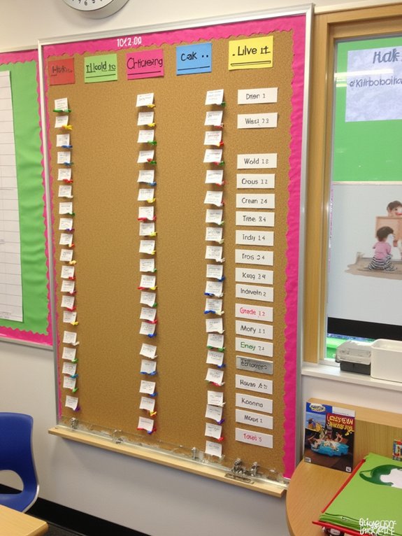 A classroom mail sorter system provides an organized method for managing student paperwork and documents. Using labeled slots for each student creates individual mailboxes where teachers can efficiently distribute graded assignments and important notices while students can submit their work.