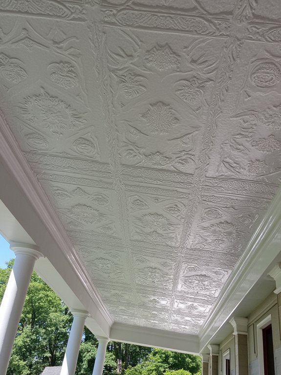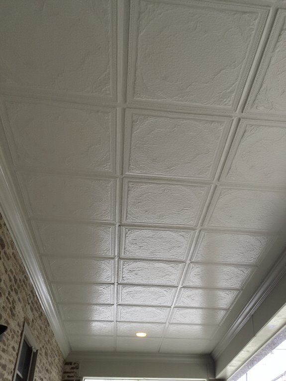 The panels offer practical advantages beyond their aesthetic appeal, including moisture resistance and the ability to hide minor ceiling flaws. When installed in a precise grid pattern, they provide both structural stability and architectural interest, making them an elegant choice for homeowners seeking to enhance their porch’s appearance while maintaining functionality.