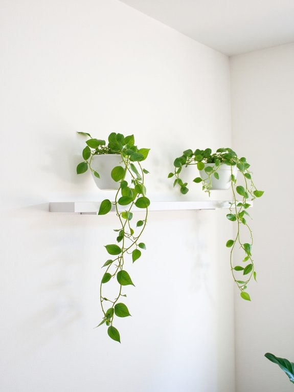 These shelves require minimal installation with just two anchor points each and work best when placed near windows for optimal natural light. The natural materials and clean lines complement indoor greenery while the adjustable heights allow for customized plant arrangements that keep floors and surfaces clear.