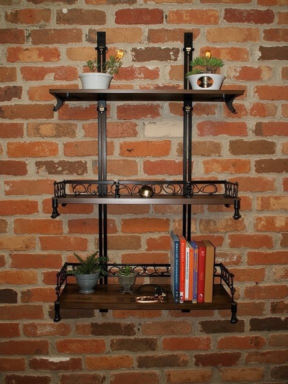 These 36-inch by 12-inch shelves showcase exposed hardware that emphasizes their industrial aesthetic while maintaining clean lines. The design blends raw materials with modern functionality, making them perfect for displaying books, artwork, or collectibles in industrial-style spaces. Installation takes approximately 30 minutes using basic tools.