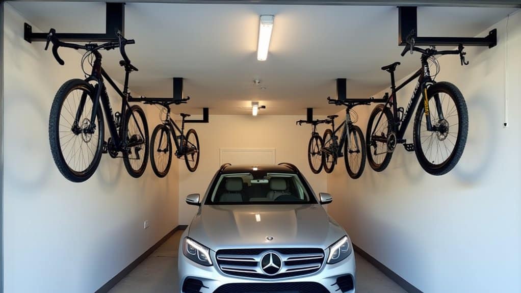 To maximize efficiency, hang the bikes upside down or vertically, depending on the rack design, to minimize the space they occupy. Confirm the rack is adjusted to a height that allows you to retrieve the bikes without strain, and double-check the stability of the installation to prevent accidents. This method not only declutters the garage floor but also protects your bikes from potential damage caused by leaning or stacking.