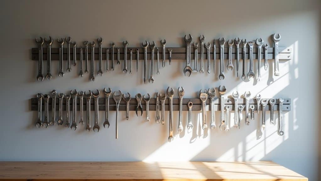To install, use a level to mark a straight line on the wall, then secure the strip with screws or heavy-duty adhesive, following the manufacturer’s instructions. Make sure the strip is firmly attached to support the weight of heavier tools without sagging or detaching. Once installed, categorize and arrange your tools on the strip for quick identification, keeping frequently used items at the forefront while storing less-used ones towards the ends.