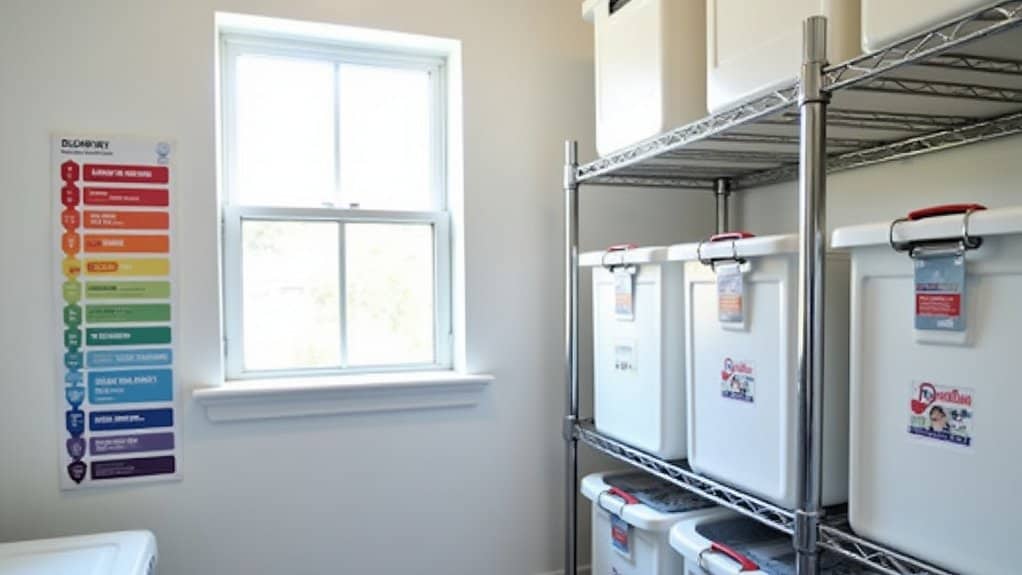 Install Labeled Storage Bins