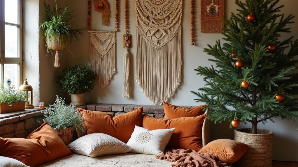 Transform your holiday home into a free-spirited wonderland with bohemian Christmas decorating ideas that break from tradition. Instead of classic red and green, embrace warm earth tones, natural textures, and handmade elements that bring soul and personality to your festive space.