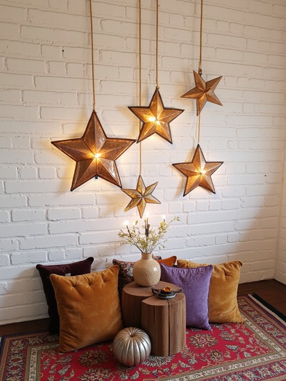 Copper stars create captivating holiday displays by combining celestial motifs with metallic warmth. When arranged thoughtfully on walls using removable hooks, these stars bring an enchanting bohemian flair while bridging traditional and modern design elements.