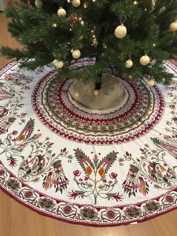 Embroidered tree skirts transform the base of holiday trees into artful displays through detailed needlework that embraces bohemian style. These decorative pieces combine festive patterns with handcrafted charm, featuring traditional motifs like peacocks, florals, and mandalas alongside mixed-media elements such as vintage fabric patches.