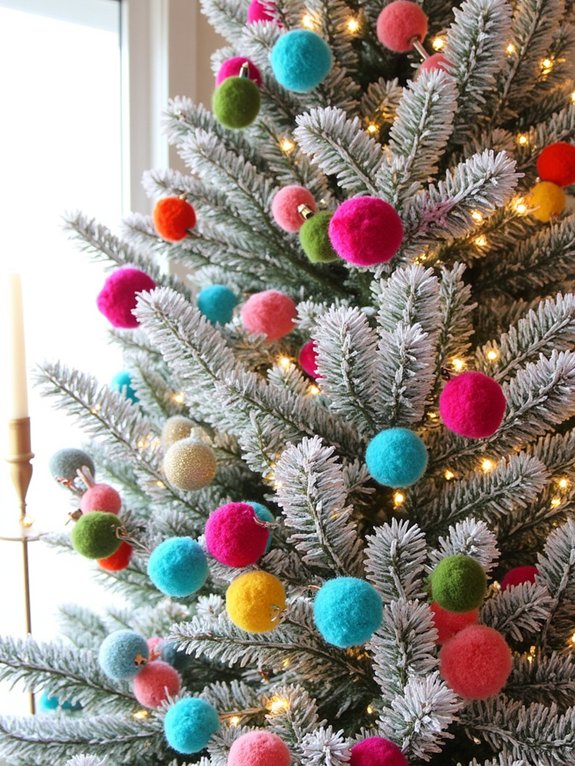 A pom-pom garland adds whimsical charm to Christmas trees while maintaining a handcrafted, bohemian aesthetic. This festive decoration combines yarn in earthy tones like terracotta, sage, and cream with traditional pom-pom making techniques to create a unique statement piece.