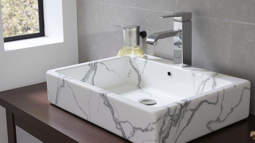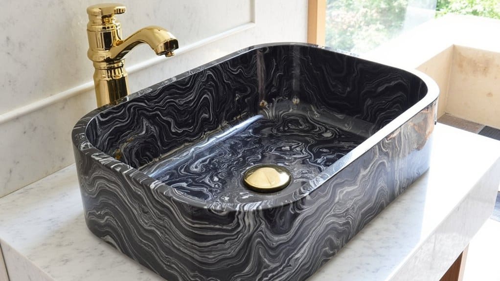 Elegance awaits with a striking marble sink as the centerpiece of your powder room makeover. You’ll transform this small space into a luxurious retreat with a 24-inch wide, 18-inch deep basin. Install it in under two hours with basic tools. “Marble adds timeless sophistication,” says interior designer Jane Harper.