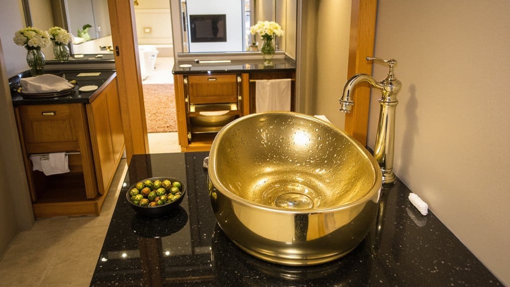 Picture a dazzling centerpiece as you step into a powder room with a gleaming gold sink. This stunning feature, often 16 inches wide and 12 inches deep, instantly grabs attention. You’ll love how it transforms a small space into a luxurious haven in just a 2-hour installation.