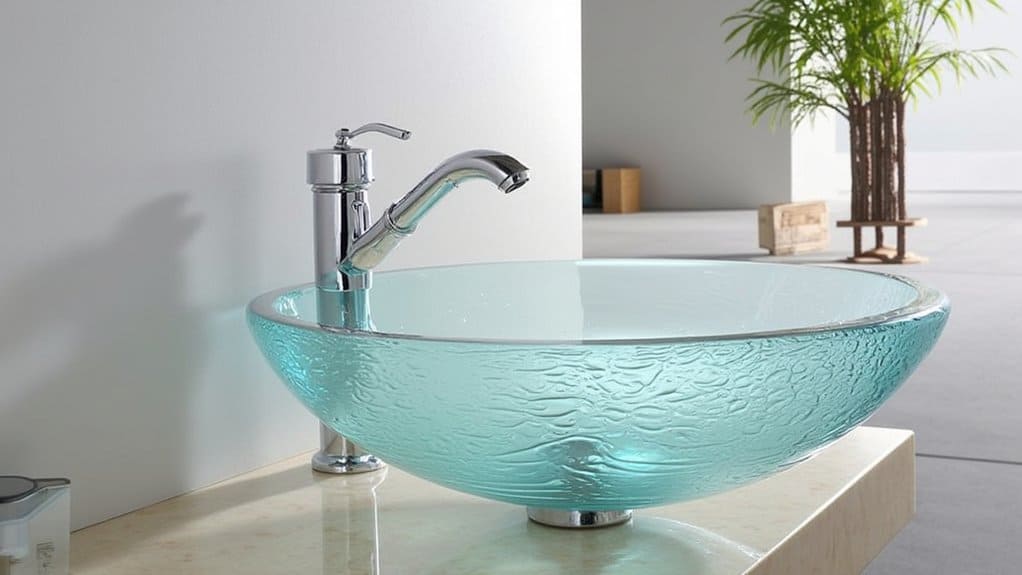 Take a bold step in your powder room design by installing a sleek glass sink that radiates modern elegance. You’re choosing a standout piece, often 16-18 inches wide, that takes just a weekend to install with basic tools.