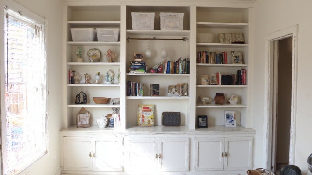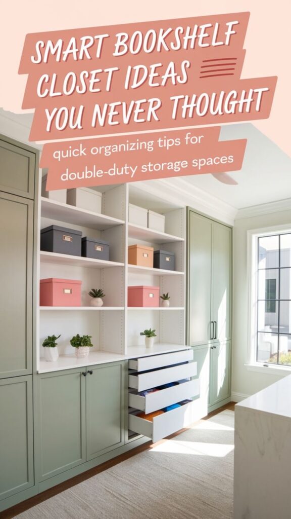 Hey there, let’s chat about turning your bookshelf closet into a multi-functional gem! I’ve got a trick up my sleeve that’ll make your space work harder for you. Start by sorting your books and knick-knacks by size—stack those hefty textbooks on a sturdy bottom shelf, about 15 inches high. Trust me, I learned this the hard way after a topple! Curious how to zone it next? Stick with me!