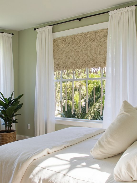The piece can be customized with shell beads and wooden accents while maintaining a neutral palette that works well with tropical design elements. When properly positioned above a bed or seating area, these handcrafted hangings add artistic dimension and casual sophistication to the room’s overall aesthetic.