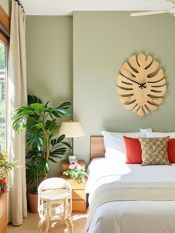 Constructed from sustainable materials such as bamboo and reclaimed wood, these clocks operate on silent quartz movements to maintain a peaceful environment. The versatile design allows for easy coordination with other leaf-themed wall décor, creating a cohesive tropical atmosphere while serving an essential purpose.
