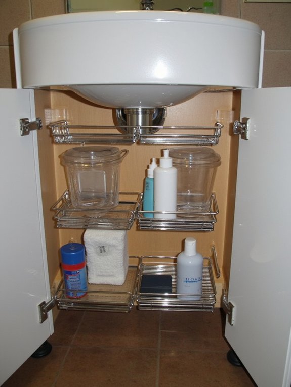 Installing under-sink cabinet organizers transforms cluttered spaces into efficient storage areas. Pull-out drawers, stackable bins, tension rods for spray bottles, and rotating lazy Susans work together to maximize space and improve accessibility.